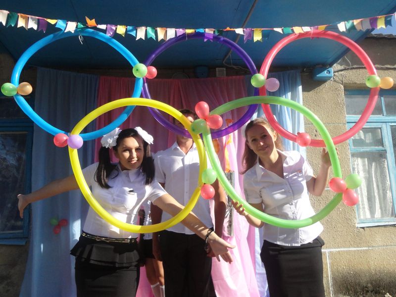 Ребята из начальных классов в знак содружества пяти континентов изобразили олимпийские кольца и поприветствовали