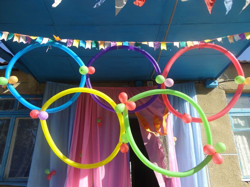 Ребята сделали коридор из ярко -красных и желтых воздушных шаров. Поприветствовали песнями и кричалками юных спортсменов с факелом.