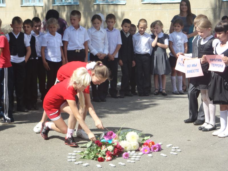 3 сентября прошла линейка, посвященная Дню солидарности в борьбе с терроризмом. Ребята вспомнили трагедию в городе Беслане и почтили память минутой молчания.