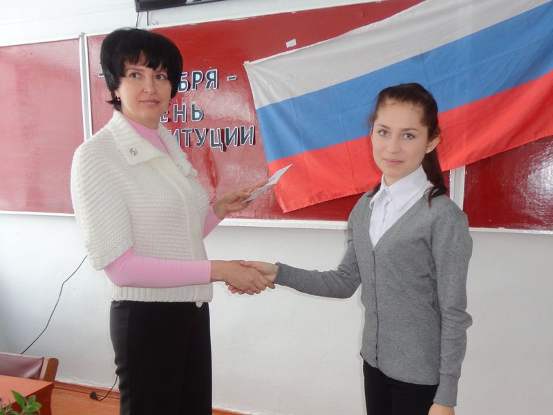 Директор школы наградила грамотами учащихся за хорошую успеваемость, за творческую инициативу,