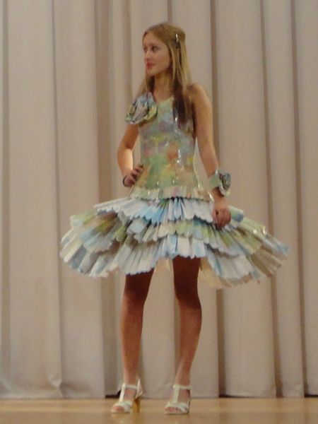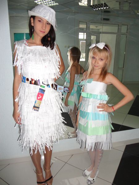 Все наряды участниц были сделаны из ученических предметов: исписанных тетрадей, дневников,