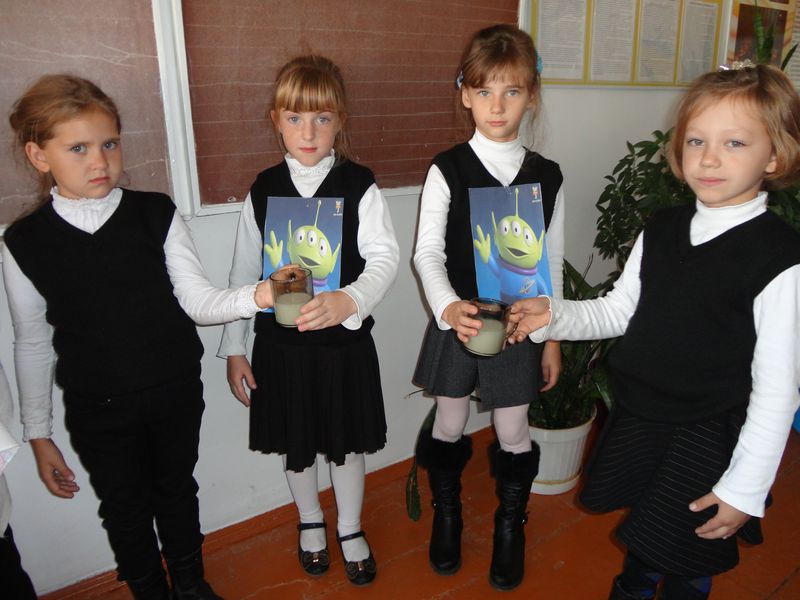 Учащиеся 1 класса встречали инопланетян и учили их хорошим привычкам.