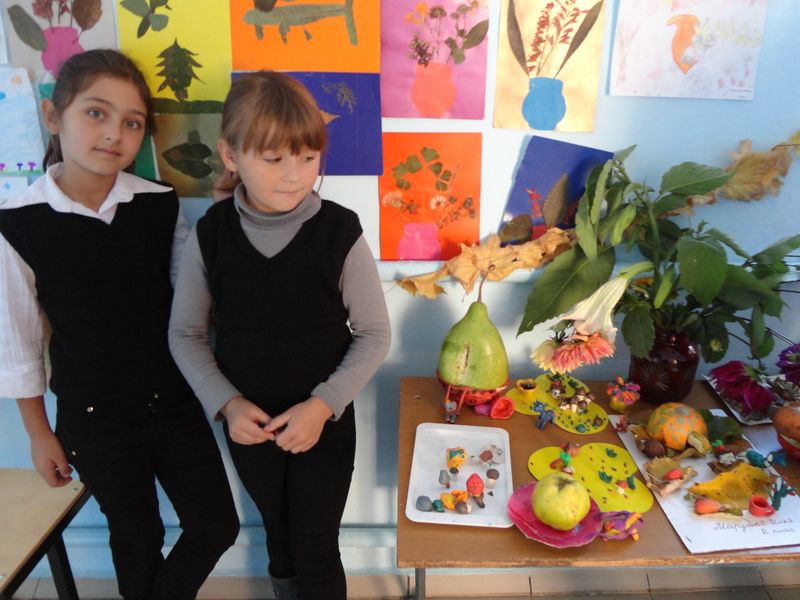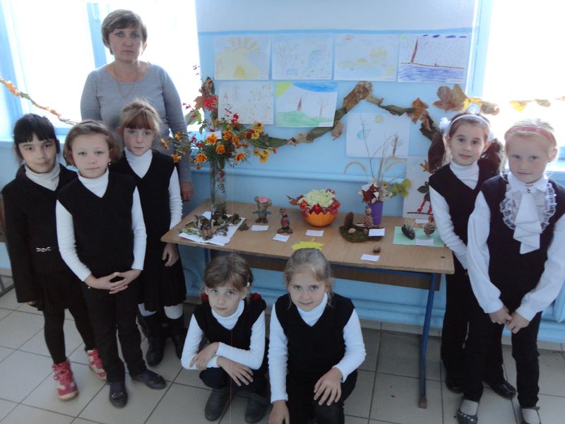 Красочной получилась выставка из поделок из природного материала, букетов осенних цветов, рисунков «Золотая Осень».
