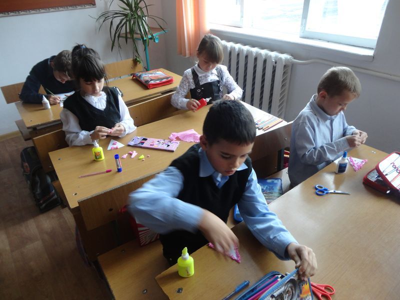 3 класс организовали выставку работ «Веселые аппликашки». А учащиеся 1 класса приняли участие